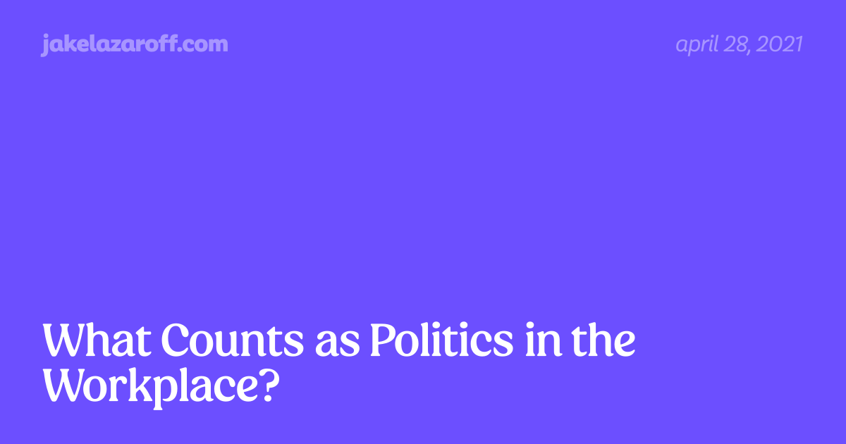 While I had my opinions about that What Counts as Politics in the Workplace? | jakelazaroff.com Basecamp says that "work is not an appropriate place to debate political issues". The problem is that the people on the other side aren’’t actually calling for debate. So let’s see if we can bridge the gap. What, exactly, counts as politics in the workplace?